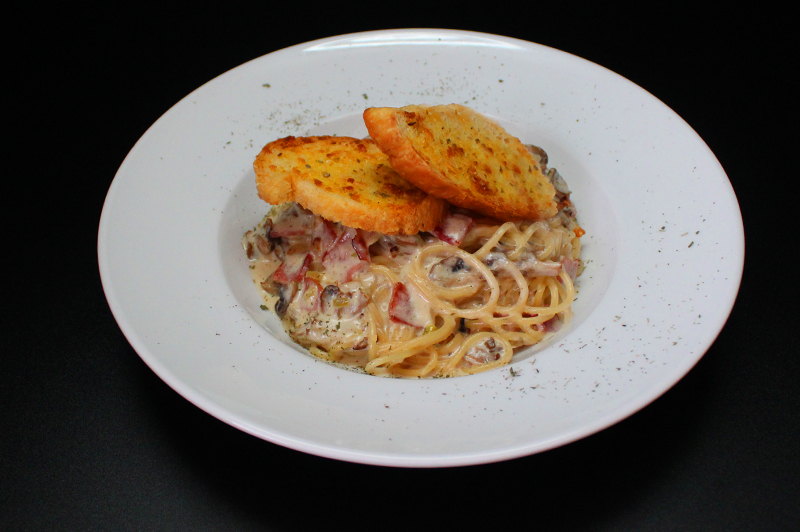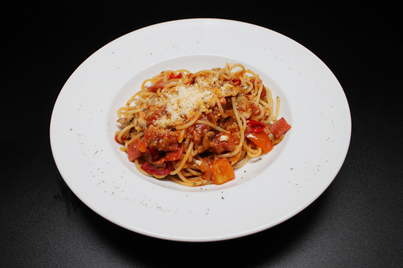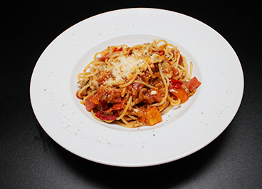 A Classic tomato-based pasta with smoked beef and crushed pepper