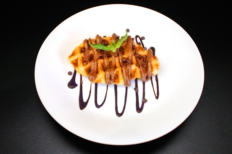 A marriage of waffle and croissant drizzled with gooey melted