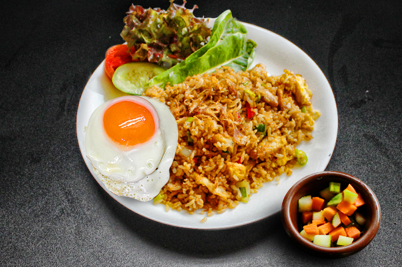 Indonesian fried rice served with sunny-side up egg