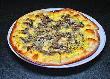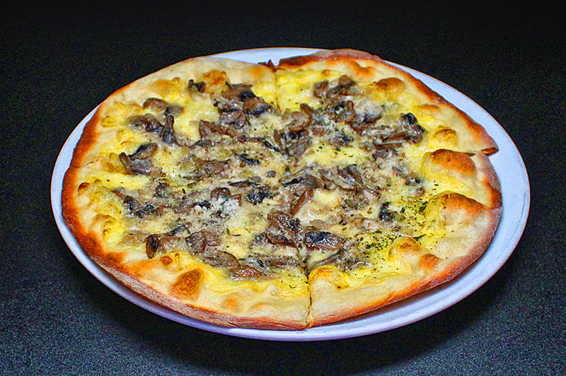 Melted mozzarella cheese topped off with creamy mushroom