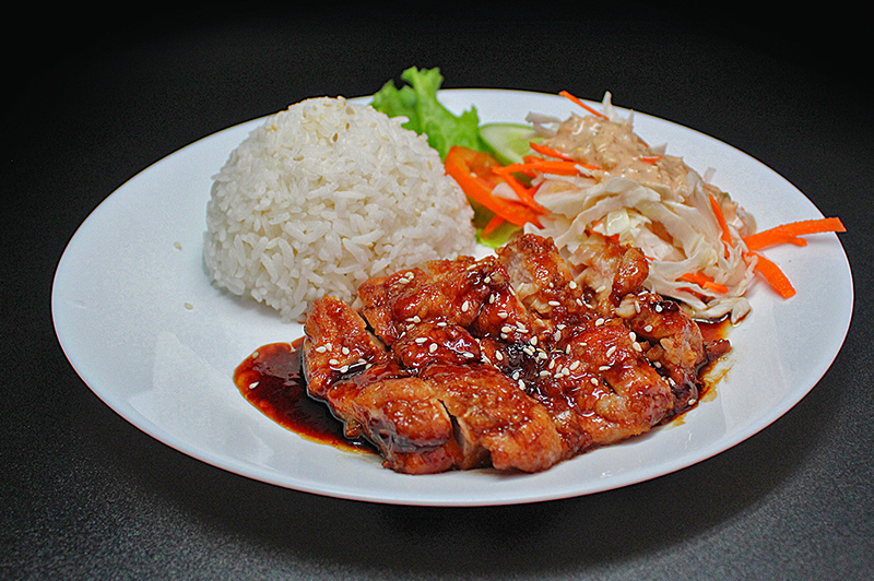 served with rice and egg